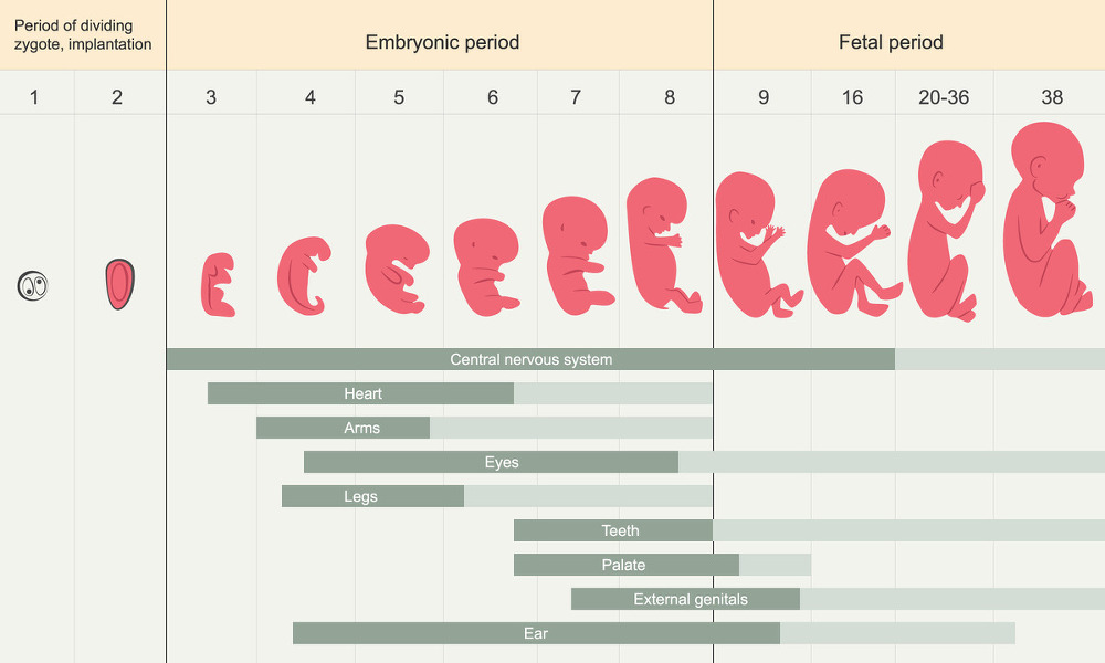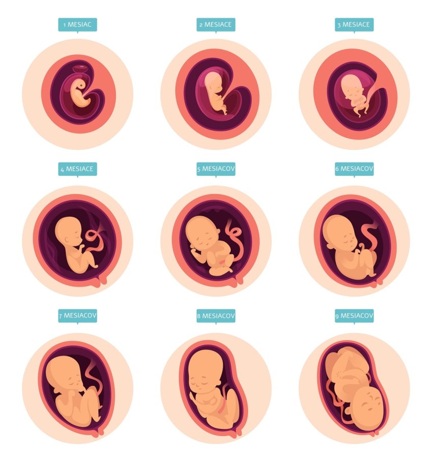 Rozmermi sa bábätko laicky prirovnáva ku karfiolu alebo klásku kukurice. Bábätko v maternici prechádza rôznymi vývojovými etapami. Čo sa vzhľadu týka, pokožka bábätka začína ružovieť. Pod kožou sa vytvárajú kapiláry, v ktorých postupne prúdi krv a pokožka sa tak zafarbuje. Celé telo je stále pokryté lanugom.