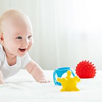 Pre rozvoj jeho zmyslov a motoriky môžete dieťaťu do rúk vkladať hračky z rôznych materiálov. Pozor na drobné predmety, pretože potreba všetko vkladať do ústa a ochutnávať je veľmi častá. Dbajte na hygienu, aby nedošlo k prípadnému zaneseniu infekcie do ústnej dutiny. Slintanie a robenie bubliniek je naozaj bábätkovskou superschopnosťou. Spomedzi hračiek sú vhodné aj také, ktoré vydávajú melódie alebo sa pohybujú. Ideálne, ak sú pestrofarebné a dieťa zaujmú. Taktiež s dieťaťom precvičujte polohu na brušku. Trénujte pretáčanie bábätka z polohy na chrbátiku na bruško. Pokladajte pred neho predmety, za ktorými sa bude naťahovať. Dokonca môžete pri tejto aktivite odhaliť preferenciu pravej alebo ľavej ruky.