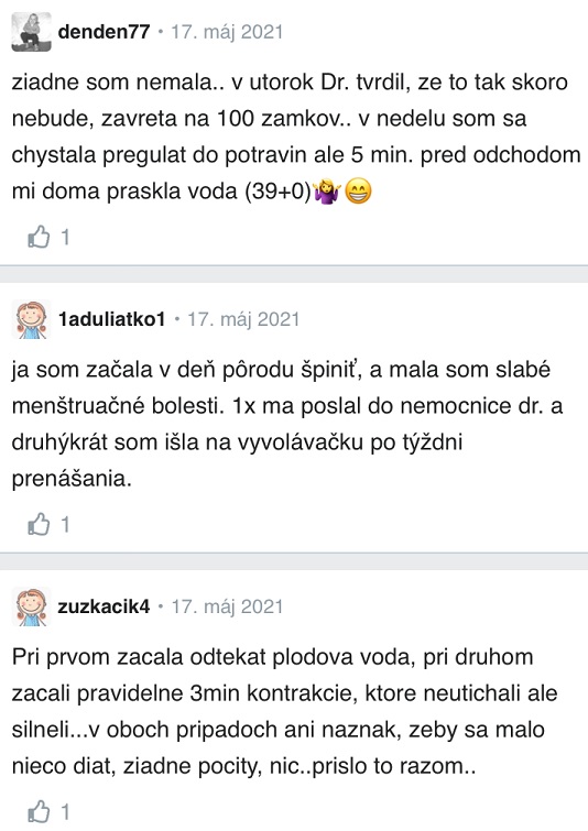 Na základe diskusných príspevkov na slovenských fórach je však možné konštatovať, že každý pôrod je iný, a teda netreba vývin situácie okolo pôrodu prirovnávať k skúsenostiam iných žien. Zatiaľ čo niektoré ženy zažívajú pôrod ako z filmu, ktorý sa spustí náhlym odtečením plodovej vody a okamžitým nástupom postupne silnejúcich sťahov maternice, iné nepociťujú vôbec žiadne pôrodné symptómy a z ničoho nič už rodia. Ide o veľmi individuálnu záležitosť, o ktorej si však treba prečítať čo najviac informácií, aby bol človek pripravený ozaj na všetko.