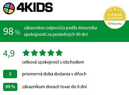 Skúsenosti zákazníkov s online hračkárstvom 4kids.sk sú veľmi pozitívne. Dokazuje to aj množstvo pochvalných recenzií na adresu predajcu. Zákazníci najviac oceňujú rýchle až expresné doručenie. Spotrebiteľov teší aj veľmi rozmanitý výber tovaru, služby e-shopu, komunikácia, ochota personálu a takisto kvalita tovaru. Zákazníci oceňujú aj prehľadné webové rozhranie alebo jednoduchý a prehľadný objednávkový systém. Viacnásobní nakupujúci sa odvolávajú na pravidelnú spoľahlivosť e-shopu. K nedostatkom, ktoré recenzie riešia, patrí len občasná nespokojnosť s kvalitou niektorých produktov, čo je však vždy subjektívne hodnotenie. Nakupovali ste už v tomto online hračkárstve? Podeľte sa o svoje skúsenosti v diskusii pod článkom. Ďakujeme za vaše názory.