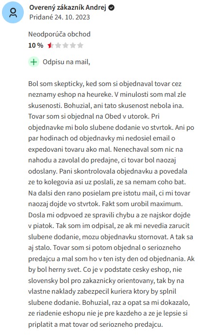 | Overený e-shop – Heureka | áno |