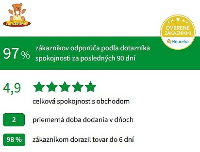 Overený e-shop (prostredníctvom Heureka.sk) má veľmi dobré hodnotenie spokojnosti 4,9 a viac ako 97 % zákazníkov obchod odporúča. Recenzie poukazujú na spokojnosť nakupujúcich s rýchlym doručením a cenami produktov. Recenzenti tiež chvália e-shop za prístup a komunikáciu. Viacerí uvádzajú, že súčasťou objednávok je darček v podobe cukrovinky. Ľudom sa pozdáva výber tovaru, ktorý má hračkárstvo k dispozícii. Medzi recenziami sa spomína bezpečné balenie, aby nedošlo k poškodeniu tovaru. Medzi negatívnymi názormi sa najčastejšie skloňuje horšia kvalita niektorých hračiek alebo ich poškodenie. Ako sa vám pozdávala kvalita produktov z tohto e-shopu? Nakupovali ste už u tohto predajcu? Sme zvedaví na vaše poznatky a skúsenosti. Zapojte sa do diskusie a prispejte svojím názorom.