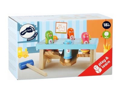 Zatĺkacia hra vyrobená z masívneho dreva a preglejky predstavuje zábavný spôsob, ako trénovať detskú zručnosť, koordináciu a motoriku. V balení sa nachádza 6 farebných vtáčikov, podložka s otvormi a kladivko na zatĺkanie. Vtáčiky sa na jednej strane zatĺkajú a na druhej vykúkajú, na každom sa nachádza číslo, takže dieťa si trénuje aj jednoduchú matematiku.