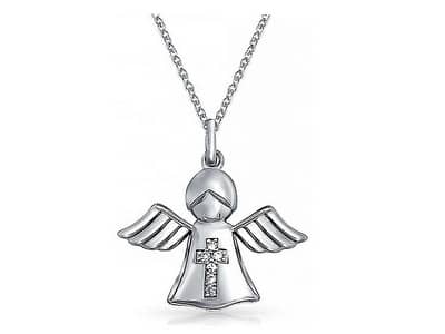 Pri významnejšej príležitosti predstavuje tento strieborný náhrdelník s príveskom anjela skutočne pamätný darček. Primárne môže byť takýto šperk nositeľom symboliky. Vyrobený je zo striebra AG 925/1000 a v prívesku sú osadené takisto zirkóny. Dĺžka retiazky je 40 cm.