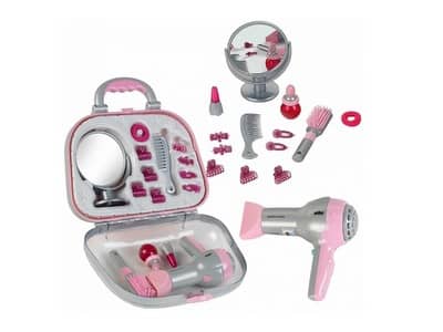 Kadernícky kufrík obsahuje imitáciu fénu, zrkadlo, štipce do vlasov, hrebeň a ďalšie doplnky. Vďaka nim sa môže dieťa zahrať na skutočnú kaderníčku. Celé príslušenstvo je uložené v praktickom a priesvitnom plastovom kufríku.