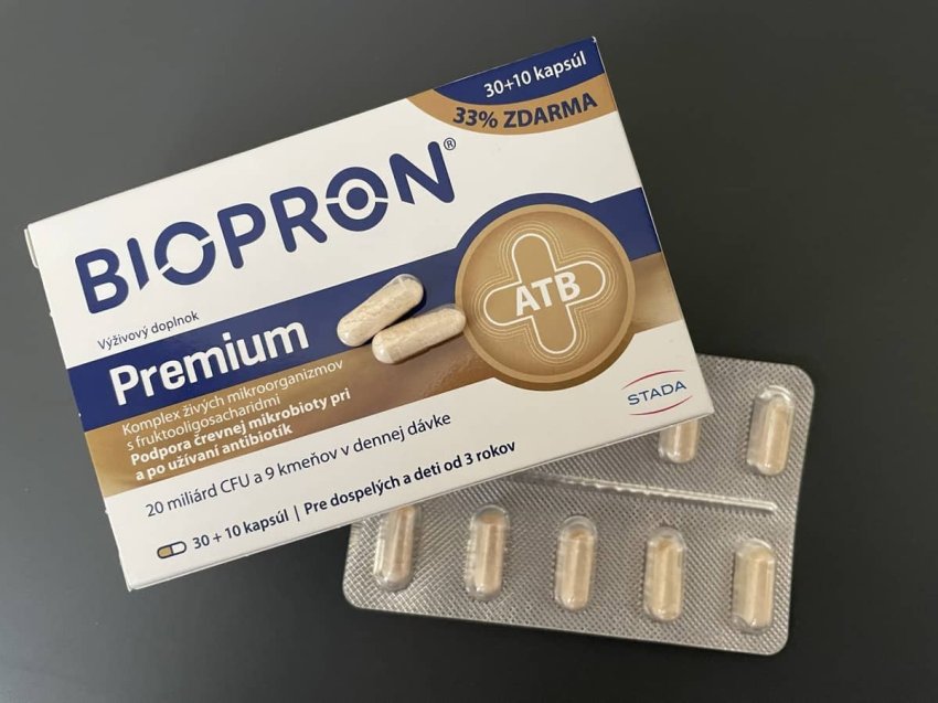 Biopron 9 Premium sú probiotiká a prebiotiká v jednom, pričom v dennej dávke je obsiahnutých až 20 miliárd CFU. Biopron predstavujú komplex laktobacilov, bifidobaktérií a fruktooligosacharidov (FOS), až 9 kmeňov vitálnych mikroorganizmov. Tieto kmene (Bifidobacterium bifidum, Bifidobacterium breve, Bifidobacterium longum, Lactobacillus acidophilus, Lactobacillus casei, Lactobacillus plantarum, Lactobacillus rhamnosus, Lactococcus lactis ssp. Lactis, Streptococcus thermophilus) sú prirodzenou súčasťou mikroflóry, preto je prípravok vhodný na dlhodobé používanie, ale aj ako súčasť antibiotickej liečby. V kapsulách sú spracované tak, aby sa aktivovali až potom, čo prejdú do tráviaceho traktu. Probiotiká vo forme kapsúl nie je nutné uchovávať v chladničke, čo mnoho mojich klientov považuje za výhodu. Upozorňujem, že ide o skutočne silné probiotiká, ktoré nemusia sadnúť každému a u niekoho môžu vyvolať hnačku. Užíva sa 1 kapsula 1-2x denne.
