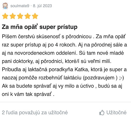 - Odporúčate túto pôrodnicu ostatným budúcim mamičkám?