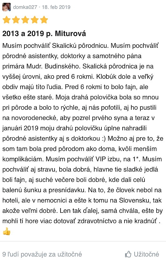 - Odporúčate túto pôrodnicu ostatným budúcim mamičkám?