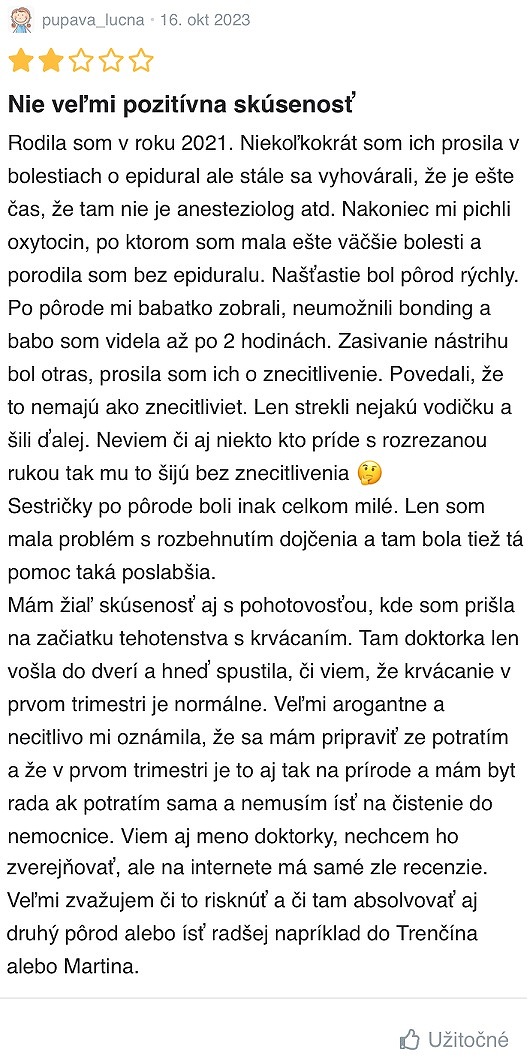 - Aké sú vaše skúsenosti s touto pôrodnicou?