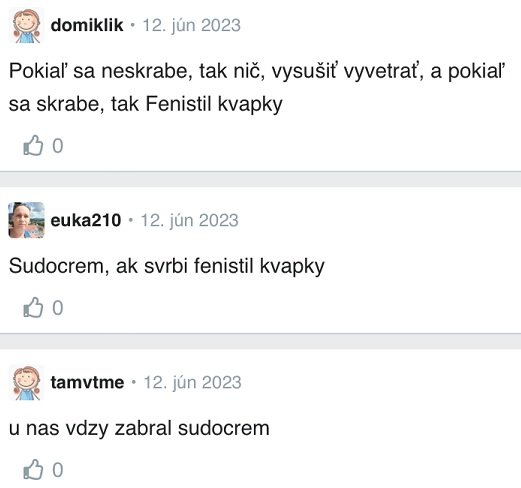 Čo sa týka skúseností diskutujúcich s potničkami, vo väčšine prípadov prevládala v otázke liečebných metód vetranie detskej pokožky. Akýkoľvek krém na potničky, ako Sudocrem či Fenistil, odporúčali mamičky až keď sa dieťatko začne škriabať. Ak bábätko svrbenie nepociťuje, stačí pokožku nechať častejšie vetrať a zbytočne nenatierať krémami. V niektorých prípadoch lekári predpisujú masti na báze kortikosteroidov, avšak tieto prípravky by nemali prichádzať do kontaktu so slnečným žiarením. Aj preto sa odporúča potierať pokožku takýmto krémom vo veľmi tenkej vrstve, a to najmä podvečer.